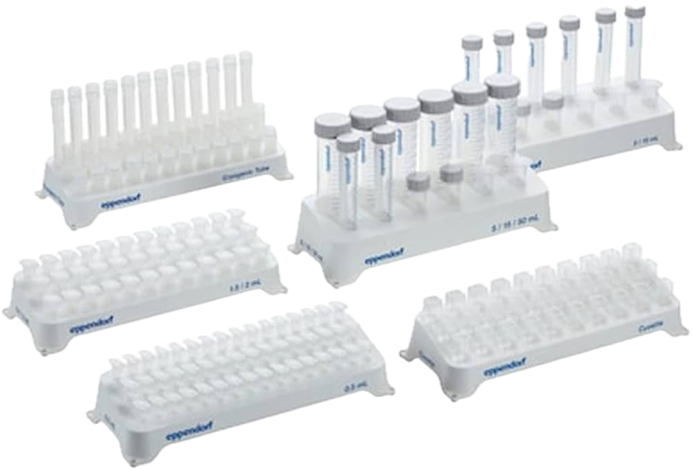 These racks, made from autoclavable polypropylene, are stackable to save lab space and designed for easy tube access during experiments like PCR or centrifugation.