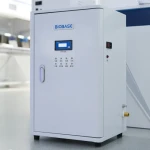 A 10L/H laboratory water purifier produces high-purity (Type I, II, or III) water from tap water using RO, DI, and UV, ideal for general analysis, reagent preparation, and glassware rinsing.